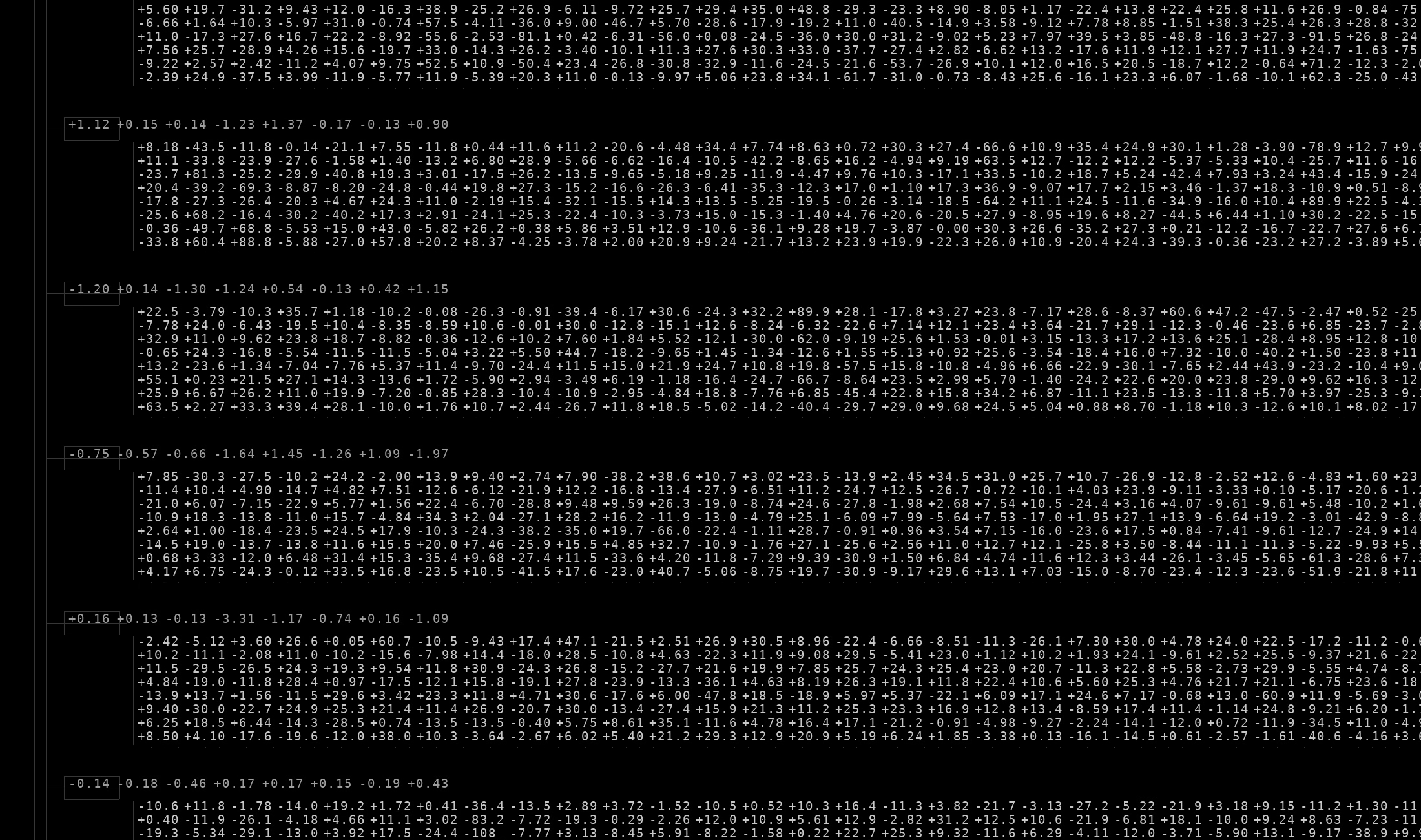가중치를 십진수 수열로 화면에 직접 표시한다. 26개 트랜스포머 레이어의 숫자들이 학습 과정에서 실시간으로 변화한다.