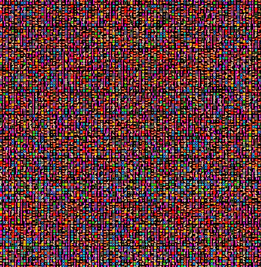 가중치 값을 32종의 색상과 형태로 변환하여 2차원 평면에 배치한다. 학습이 진행될수록 색상이 분화하며, 레이어별 특성 차이가 색의 분포로 드러난다.