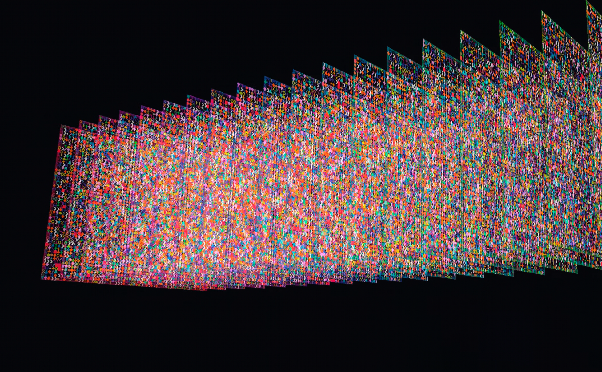 Die 26 Schichten werden als halbtransparente 3D-Platten im Raum angeordnet, während eine Kamera sie umkreist. Wenn sich die aus Rokkakus Sprache abgeleiteten Gewichte im Raum überlagern, erscheinen unerwartet ihre Farben.
